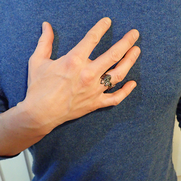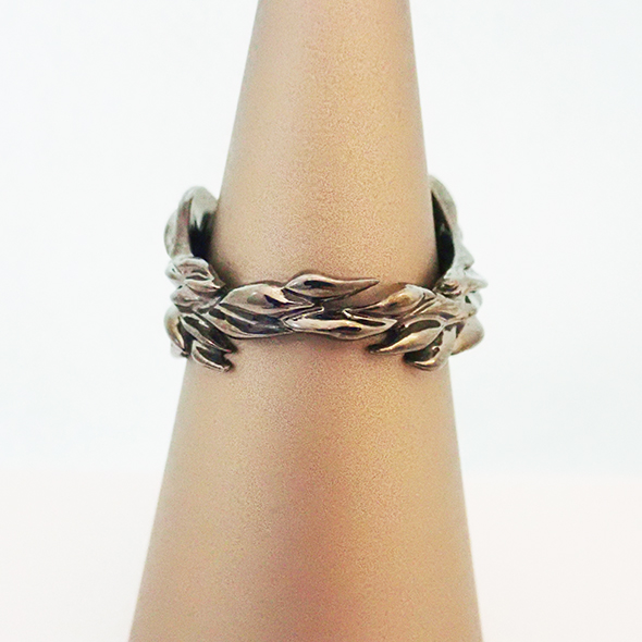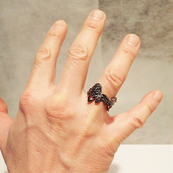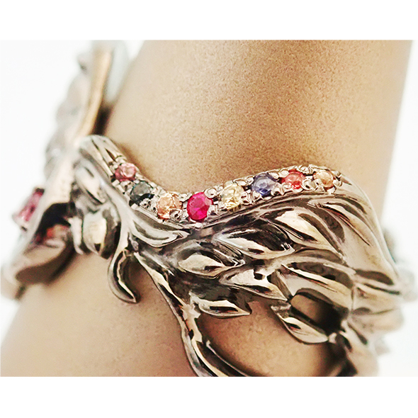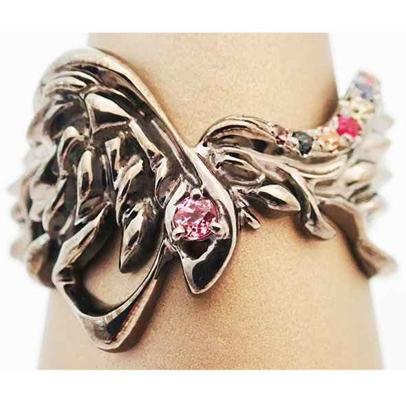 美しい翼のリングを作りました。ルテニウムメッキを施しているので、本体は美しいブラックカラーです。