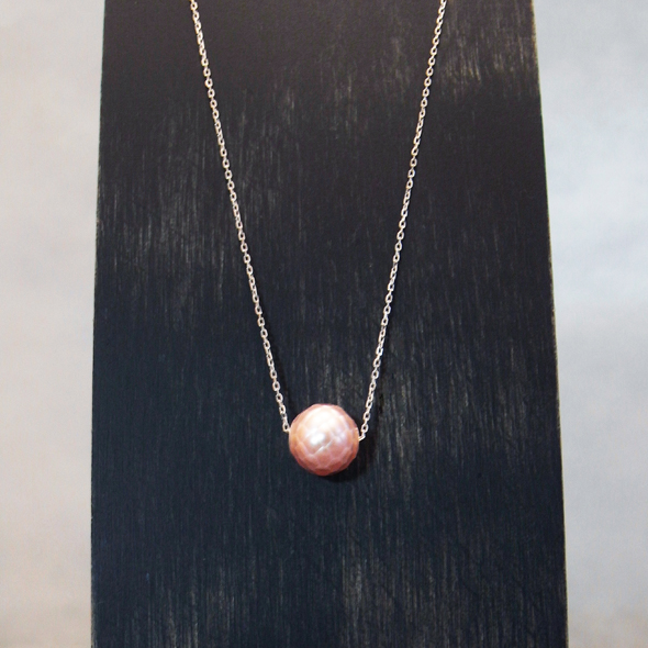 華真珠の美しさを、ダイレクトに感じていただける作品です。あえて極細のチェーンと組み合わせる事で、華真珠の存在感だけが際立ちます。首元にまとう一粒の光は、首回りを華やかにしてくれます。