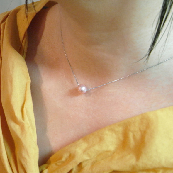 華真珠 一粒の光 シンプルネックレス(ピンク)