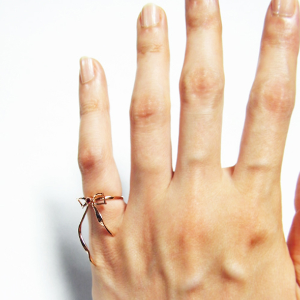 清楚なリボンの真ん中には真っ赤なサファイアが一粒。