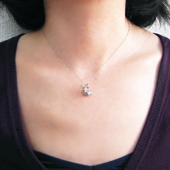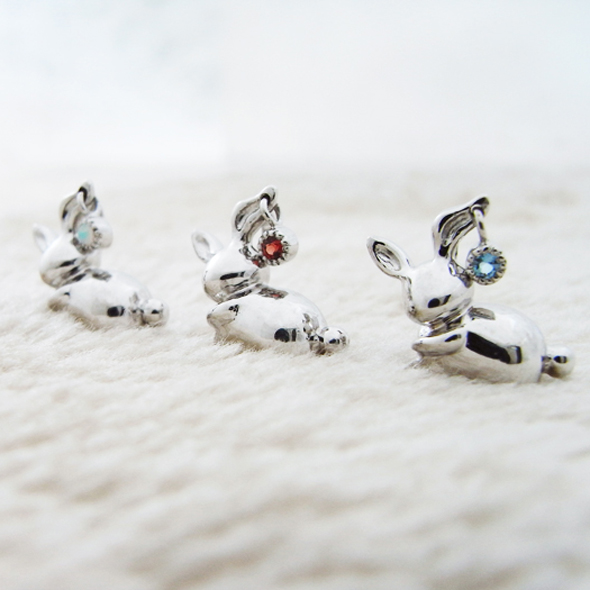そのかわいらしいうさぎ達に誕生石のピアスをつけて、お守り代わりにも使っていただけるようなネックレスを作りました。