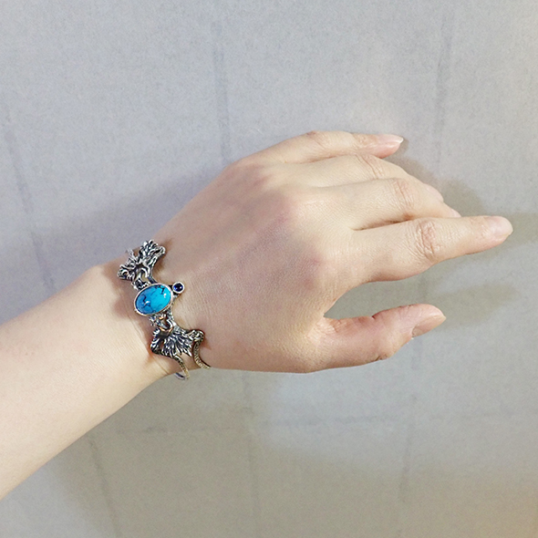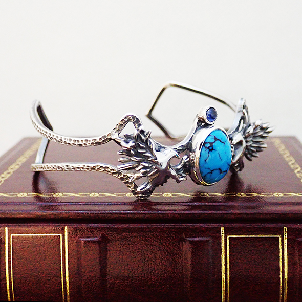 大粒のトルコ石が象徴的なバングルです。
