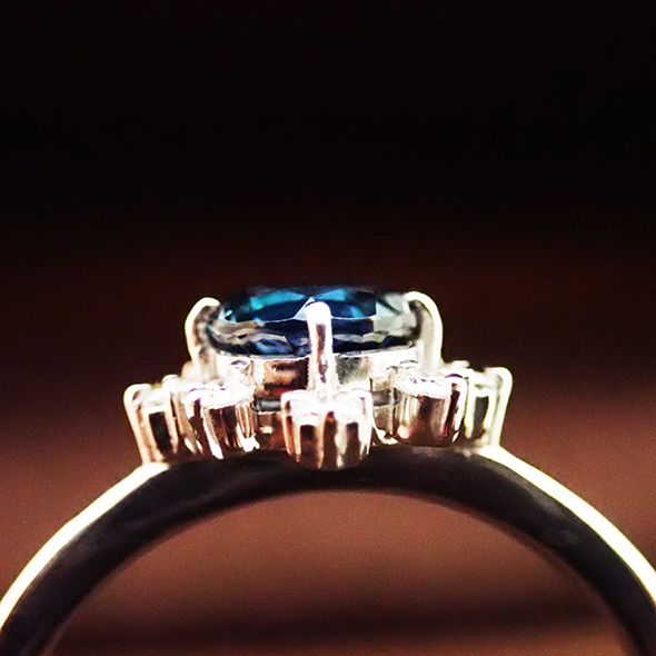 商品のお値段は、ブルートパーズとダイヤモンドが留まっている指輪の代金ですので、リフォームの際の目安としてお考え下さい。