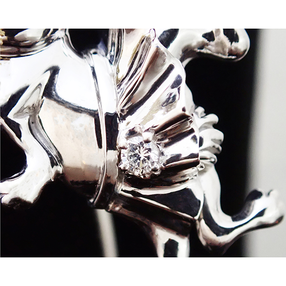 シンプルな色味がお好みだったので、スカートのベルト部分に留めている色石は全て取り外し、代わりに、誕生石のダイヤモンドを留めました。