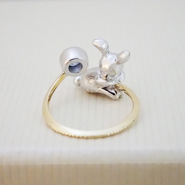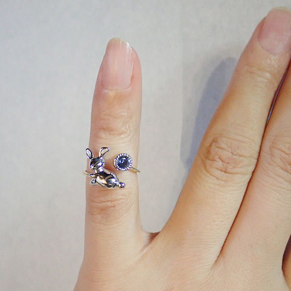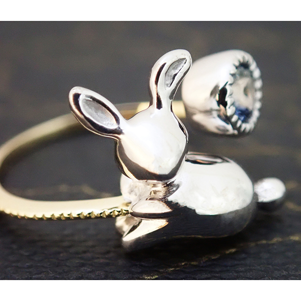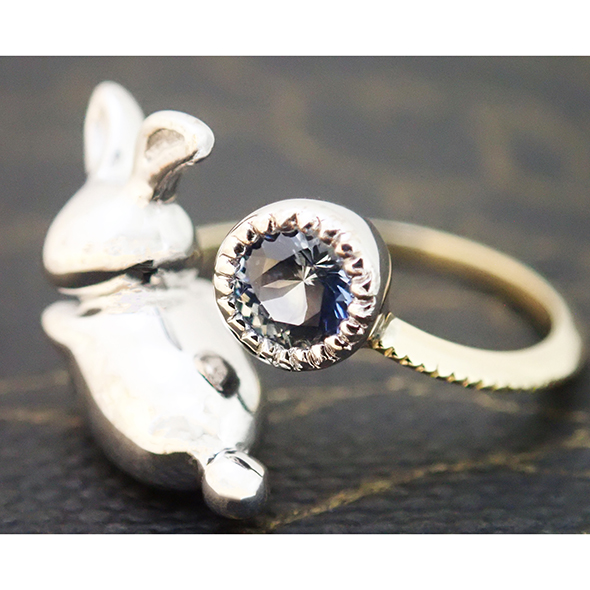 綺麗な青色がうさぎとの相性も抜群で、可愛らしいながらも大人っぽい印象の指輪になってくれたと思います。