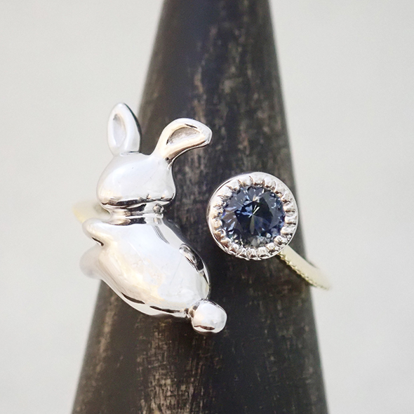 モンタナサファイア入り「月夜のうさぎピンキーリング」