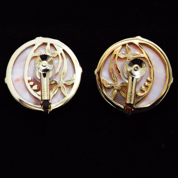 透かし模様の入った珊瑚のイヤリング