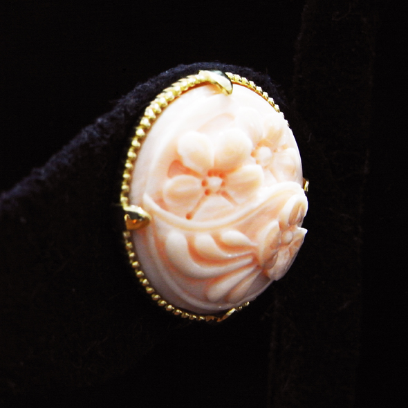 サンゴの彫りを気に入っていただいて、イヤリングに加工しました。