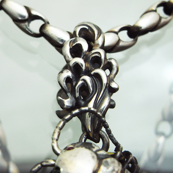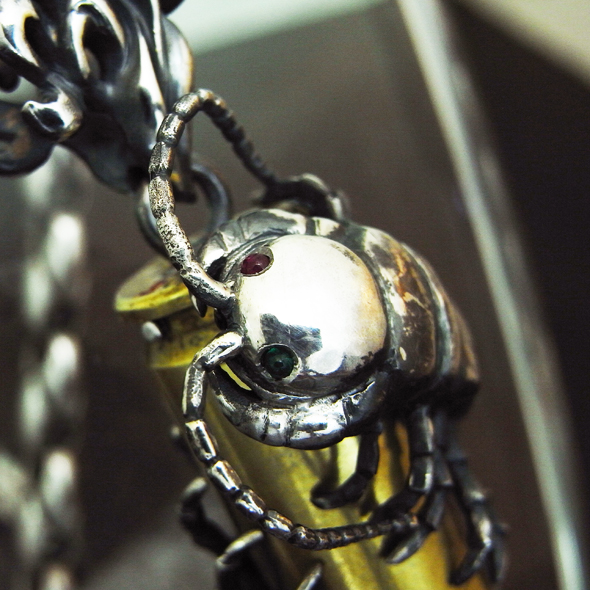 また、お客様からのご要望により、むかでの目にはルビーとエメラルドが留まっています。