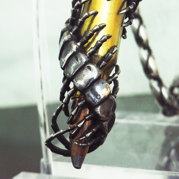 弾丸の周りに、精巧な作りのむかでが巻き付いています。