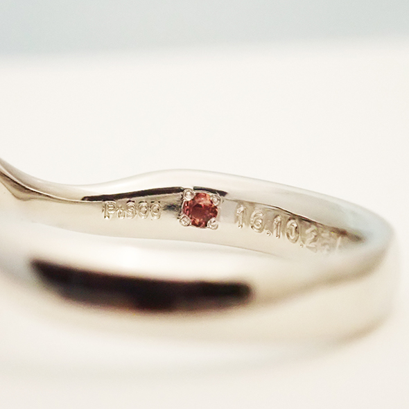 指輪の内側には、お互いの誕生石をお入れしています。