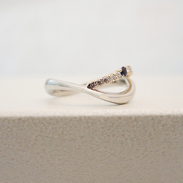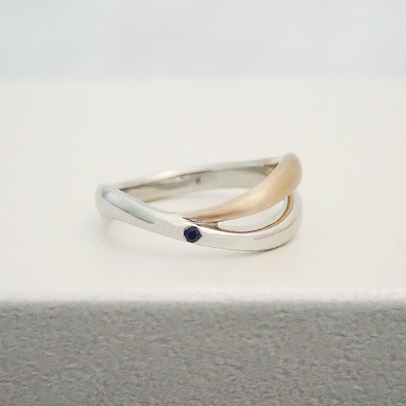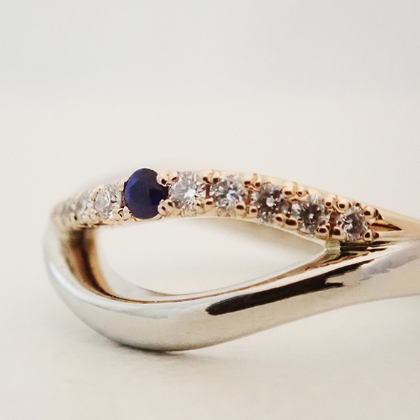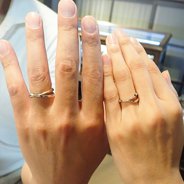 曲線がお好きだということで、どちらの指輪も流れるようなデザインでまとめています。