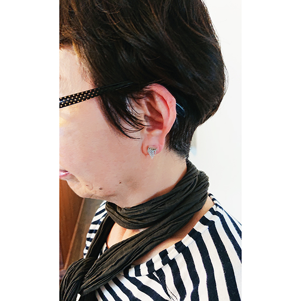 美容室のオーナー様からのオーダーで、「華やかなものが好き。でも職場に着けていたいので、お客様よりは目立たないものが欲しい。」とのご要望でした。