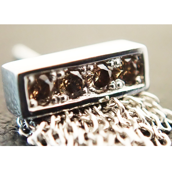 落ち着いたブラウンダイヤモンドから、無数のチェーンが垂れているシンプルながらも華やかなデザインです。