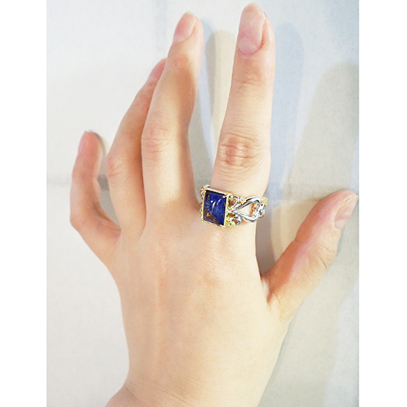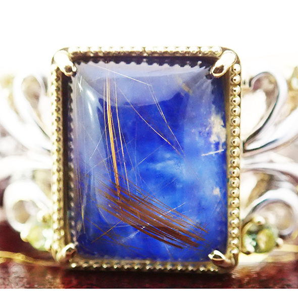 ルチルとラピスのダブレットストーンが引き立つデザインです。