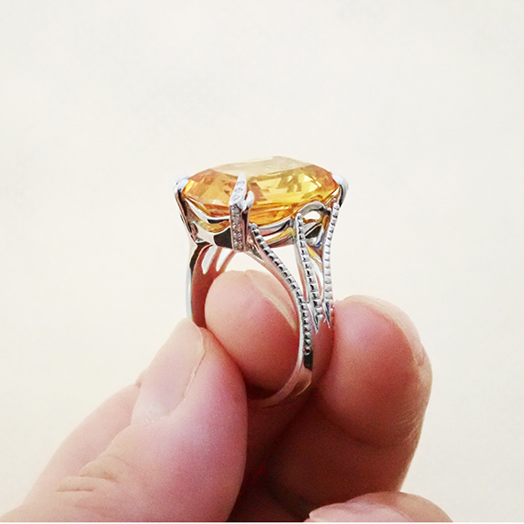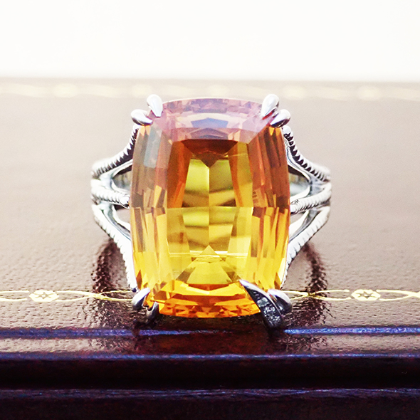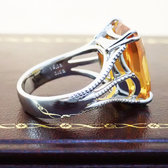 お預かりした大きなトパーズを、シンプルな指輪に仕立てました。