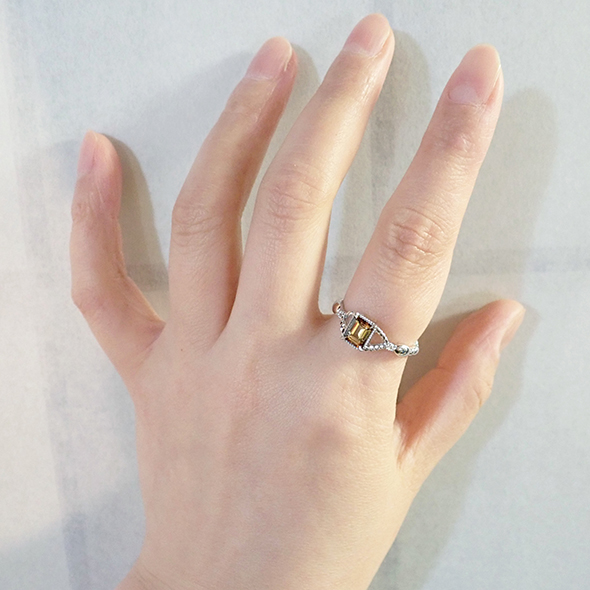 角度によって色味が変わる美しい石なので、腕の部分や石の周りも、出来るだけ楽しく華やかなデザインにしています。