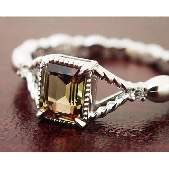 お客様から、アンダリューサイトをお預かりして、指輪に仕立てました。