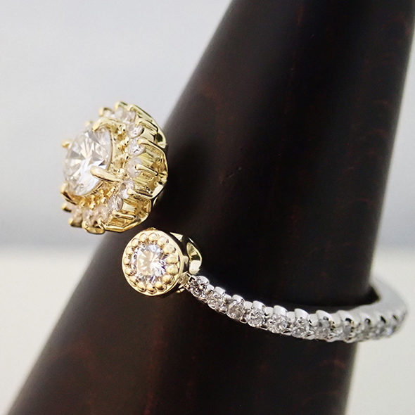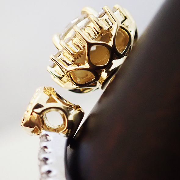 腕のプラチナ部分と腕に留めたダイヤモンド、メインの石などは元々のネックレスで使用していたものを使わせて頂いています。