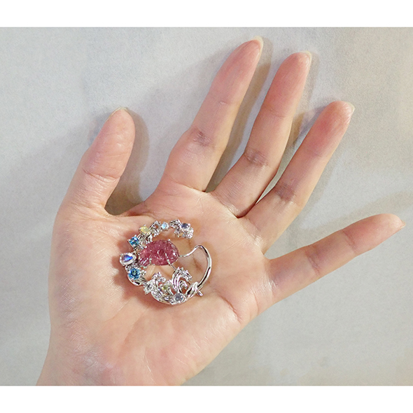 「『海老で鯛を釣る』というイメージで、ブローチを作っていただきたいです」と言われた時は、どうして良いか分からず頭が真っ白になりましたが、まずは波を金属で表現する試みから始まりました。